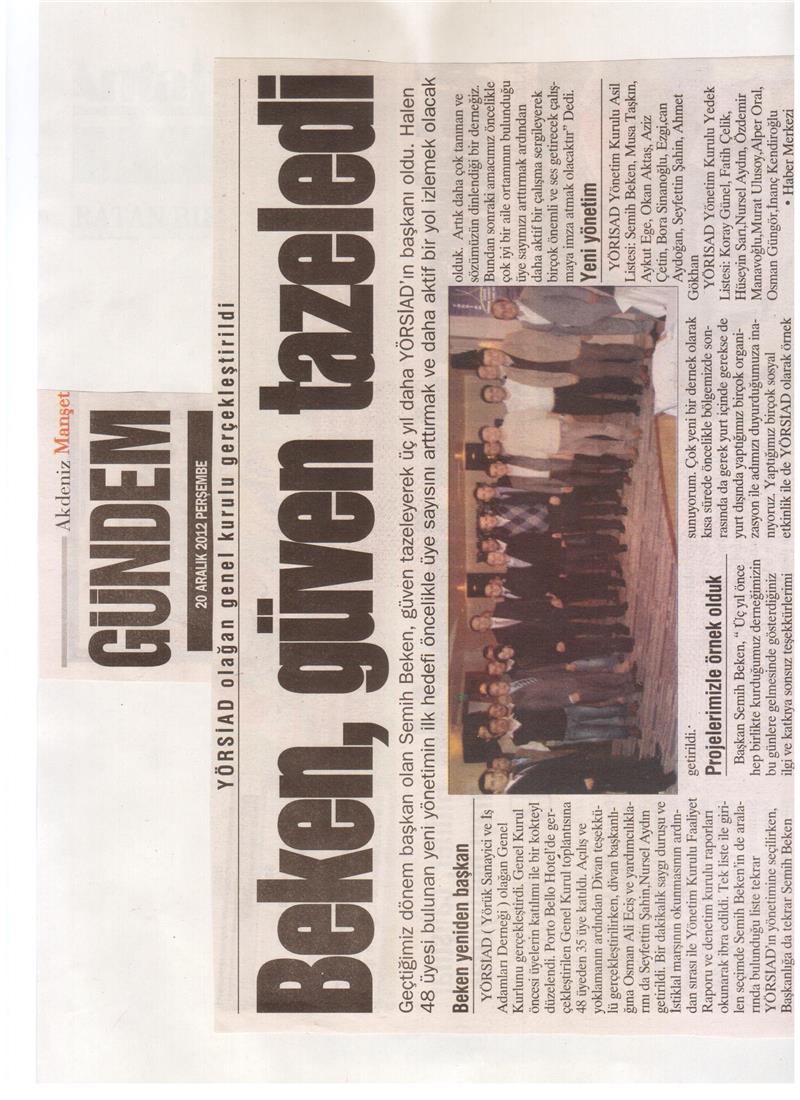2012 YÖRSİAD GENEL KURULU/ BEKEN YENİDEN BAŞKAN SEÇİLDİ