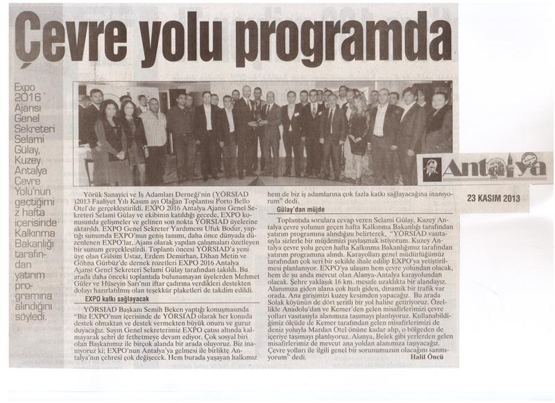 2013 YÖRSİAD ANTALYA VALİSİNİ MAKAMINDA ZİYARET ETTİ