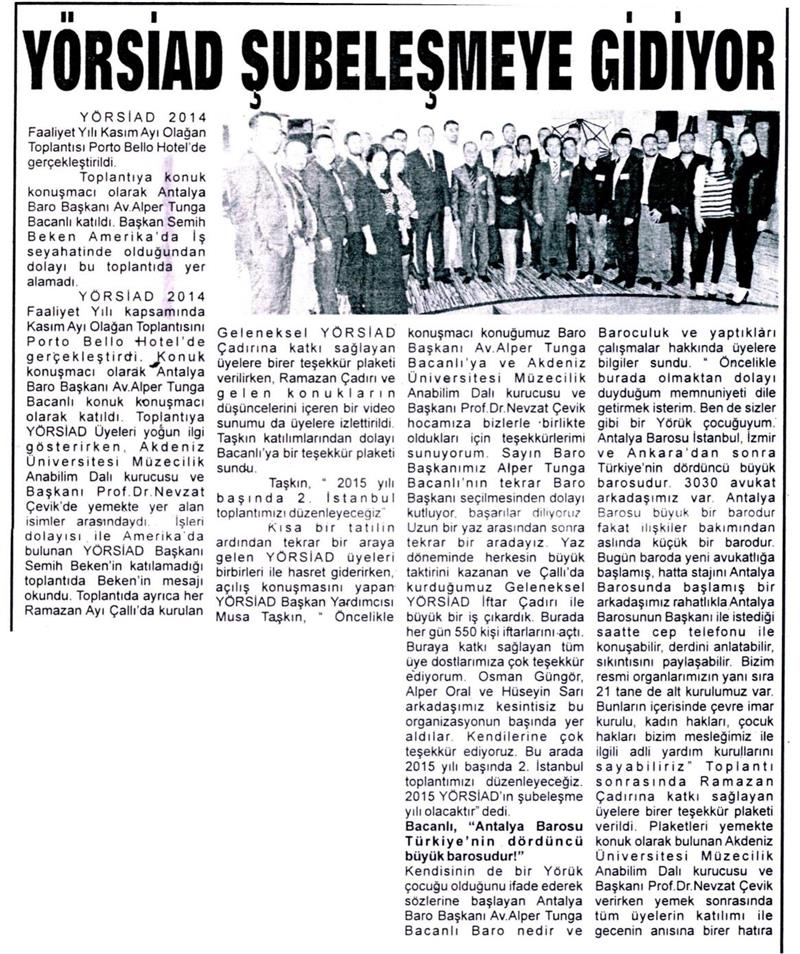2014 KASIM YÖRSİAD OLAĞAN TOPLANTISI KONUĞU BARO BAŞKANI ALPER TUNGA BACANLI OLDU