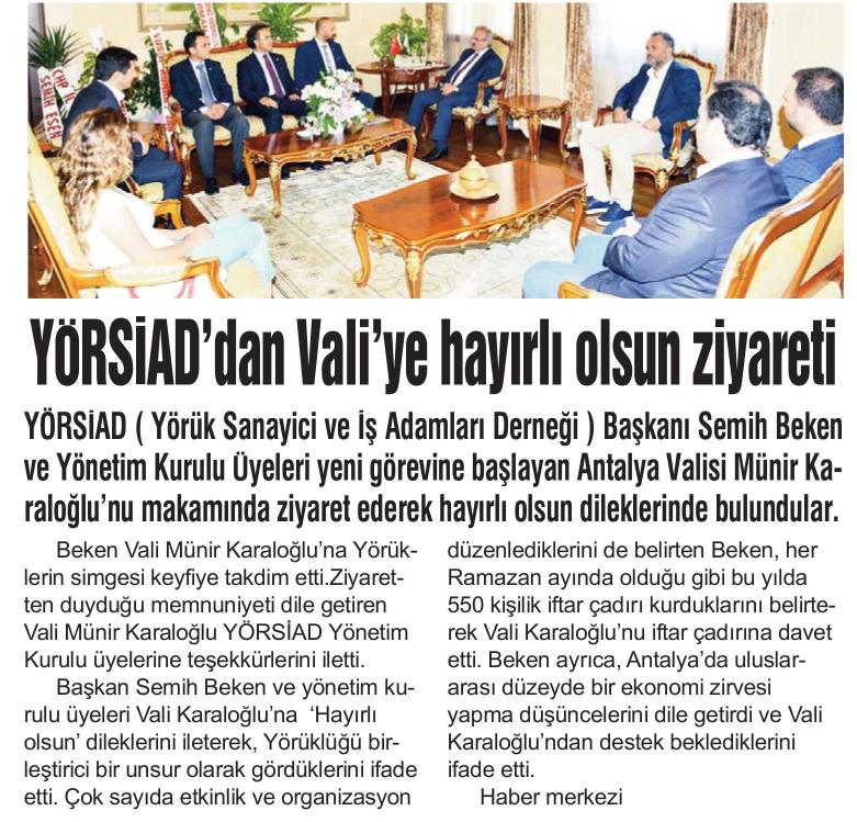 YÖRSİAD'DAN ANTALYA VALİSİ MÜNİR KARALOĞLU'NA HAYIRLI OLSUN ZİYARETİ