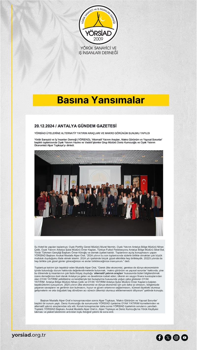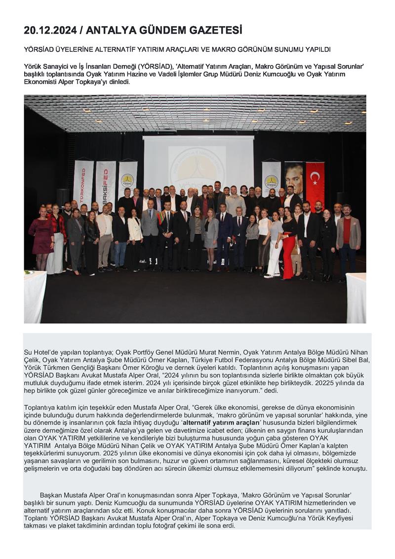 YÖRSİAD KAHVALTILI TOPLANTISI KONUĞU OYAK YATIRIM OLDU