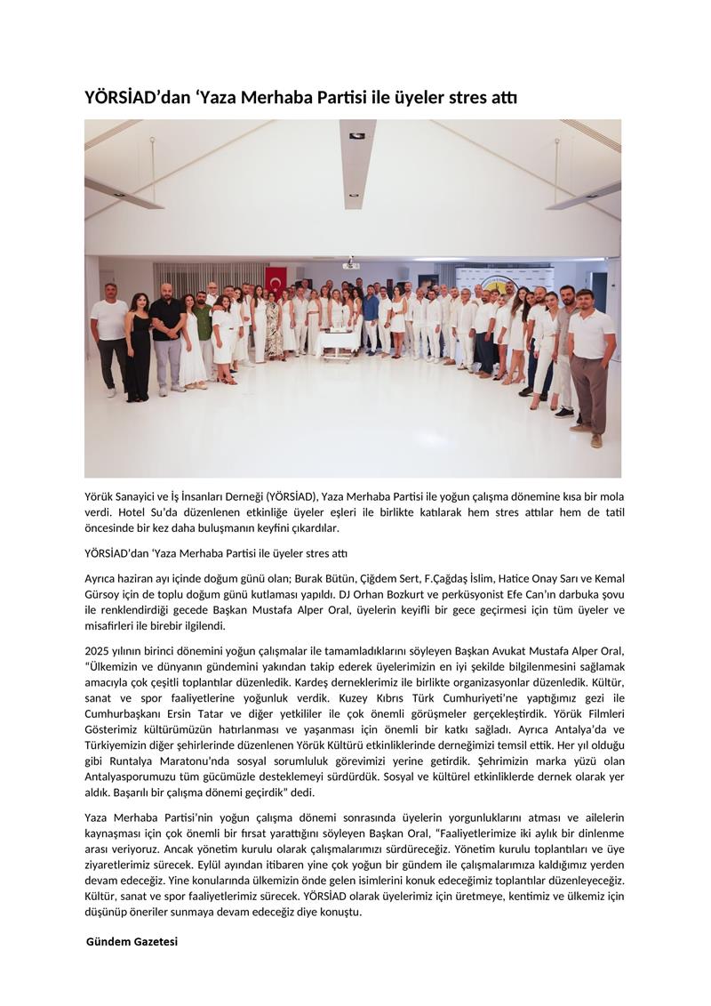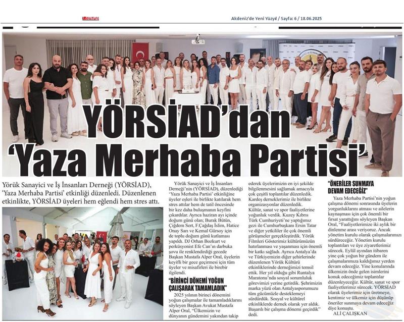 YÖRSİAD YAZA MERHABA PARTİSİ