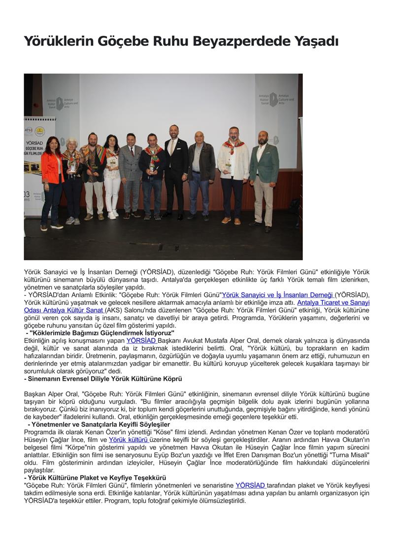YÖRSİAD YÖRÜK FİLMLERİ GÜNÜ DÜZENLEDİ