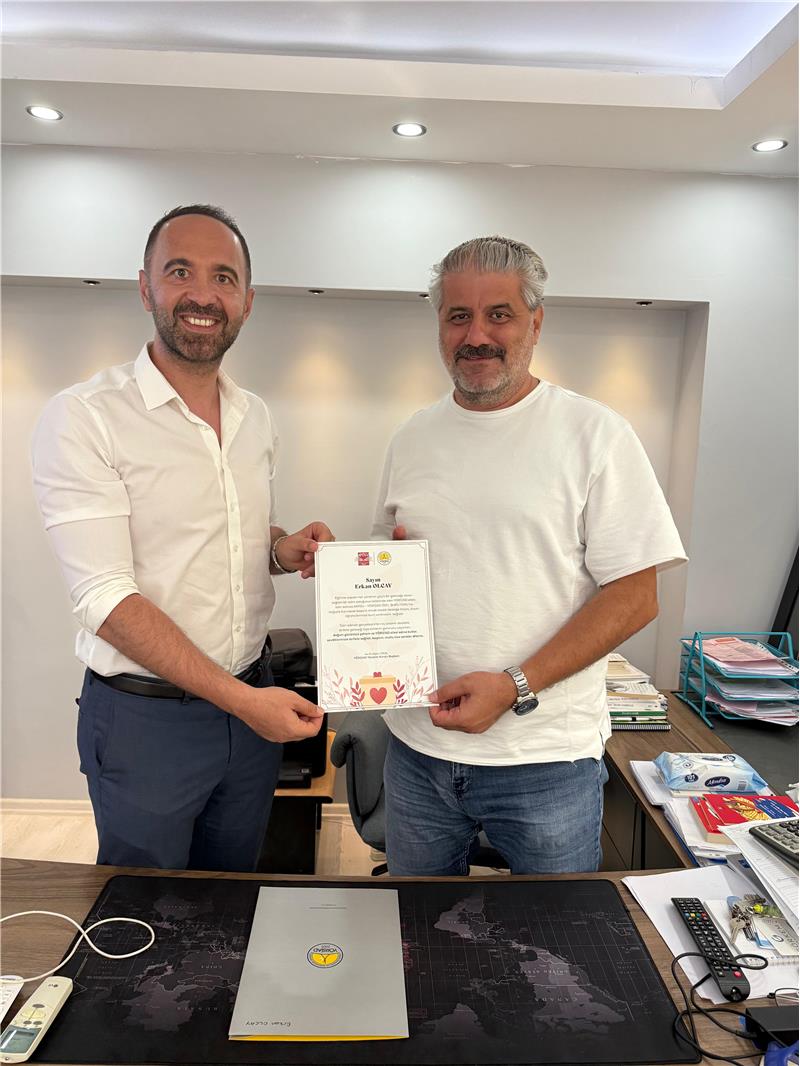 YÖRSİAD Başkanımız Sn. Av. M.Alper ORAL ve Yönetim Kurulu Üyemiz Sn. Ahmet Fuat ADAR, dernek üyemiz Sn. Erkan OLCAY'ı firması Atabay Enerji Müh.Elk.Ltd.Şti.'nde ziyaret ederek , kendisi adına yapılan ANTEV - YÖRSİAD Özel Burs Fonu bağış belgesini takdim ettiler.