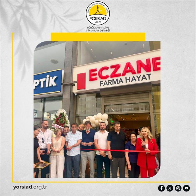 YÖRSİAD Başkanımız Sn. Av. M.Alper ORAL, Yönetim Kurulu ve dernek üyelerimiz , değerli üyemiz Sn. H.Betül KARATAŞ'ın firması 'Farma Hayat Eczanesi'nin açılışına katıldılar.