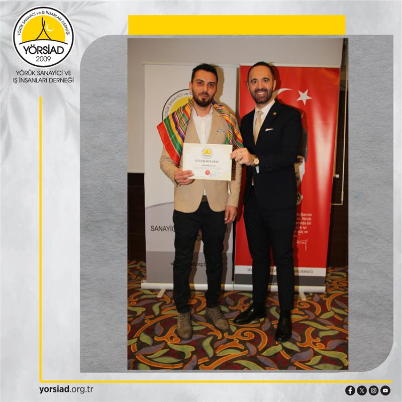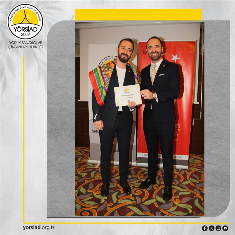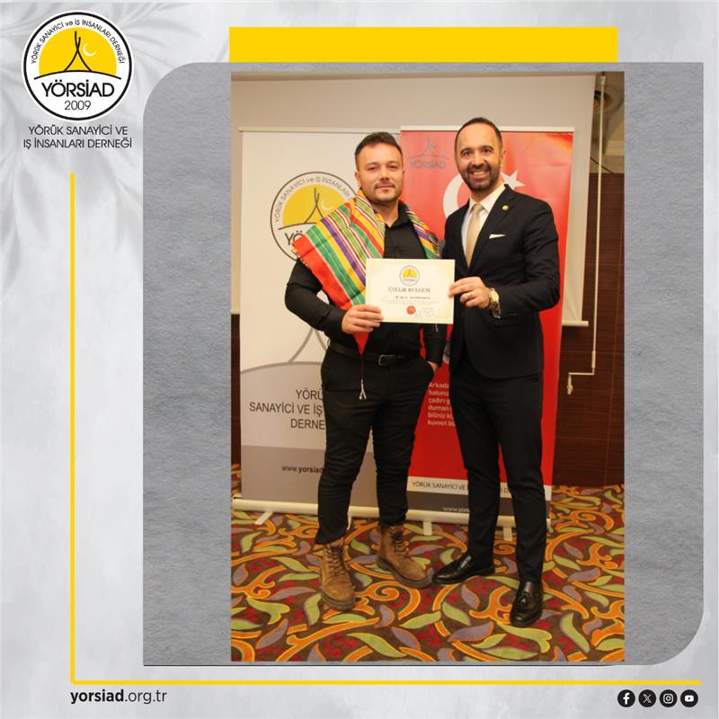 Derneğimize yeni katılan değerli üyelerimiz Sn. Cem KEÇEKÜLEH, Sn. Av.F.Çağdaş İSLİM, Sn. Hasan Efe ÇETİN, Sn. M.Mert HIZARCIOĞLU ve Sn. Mustafa ÇELİK'e üyelik rozeti, Yörük keyfiyesi ve üyelik belgelerini YÖRSİAD Başkanımız Sn. Av. M.Alper ORAL takdim etti.