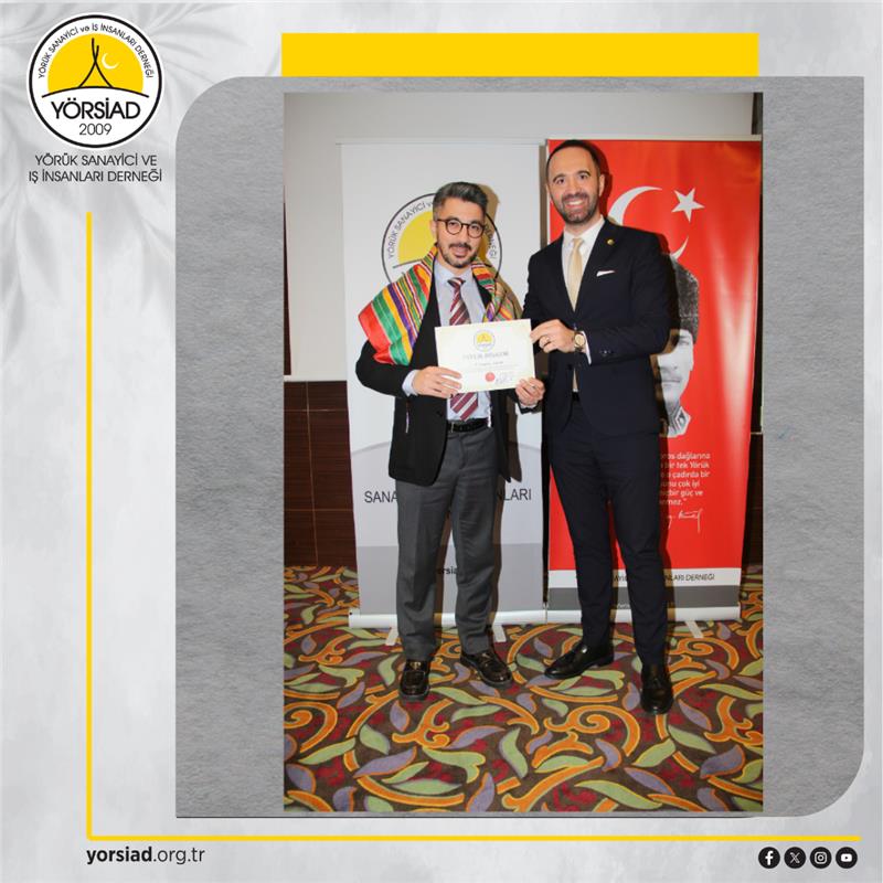 YÖRSİAD Şubat ayı Olağan Kahvaltılı Toplantımızın sonunda YÖRSİAD Başkanımız Sn. Av.M.Alper ORAL, Konuk Konuşmacımız Akademisyen, Yazar Sn. Prof. Dr. Emre ALKİN'e teşekkür plaketi ve Yörük keyfiyesi takdim etti.