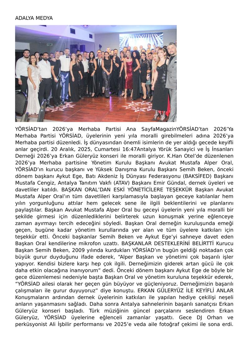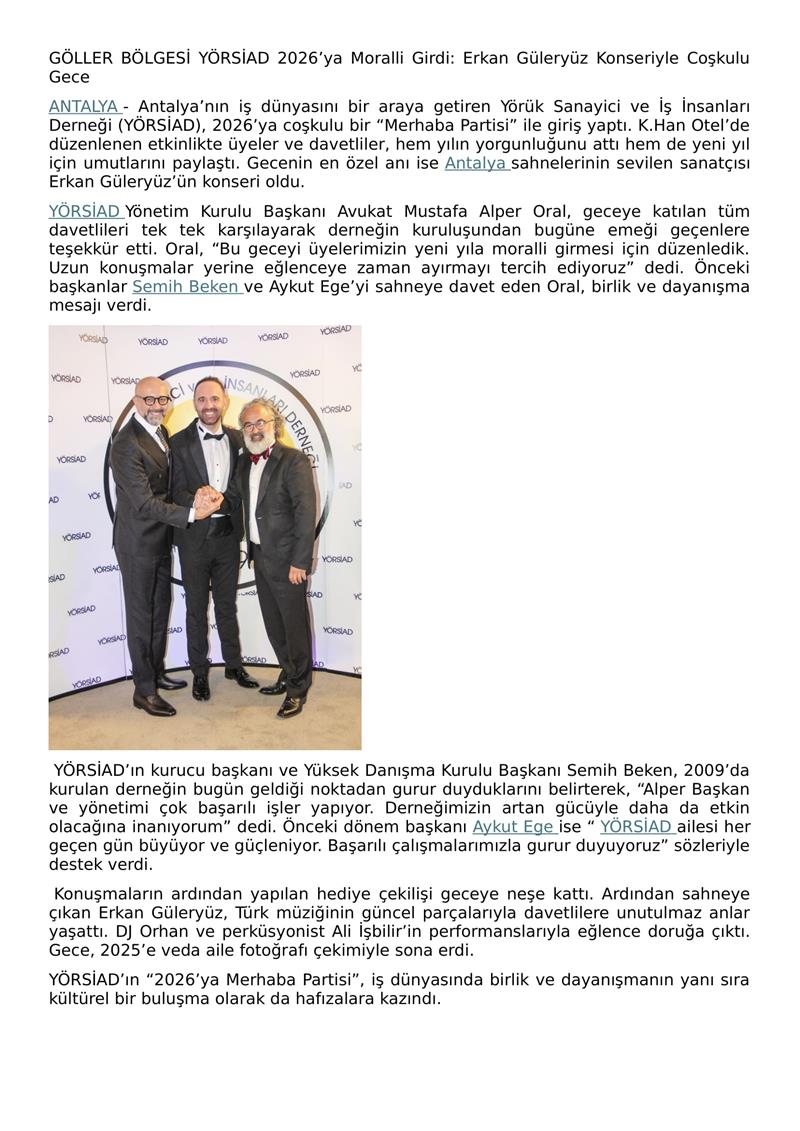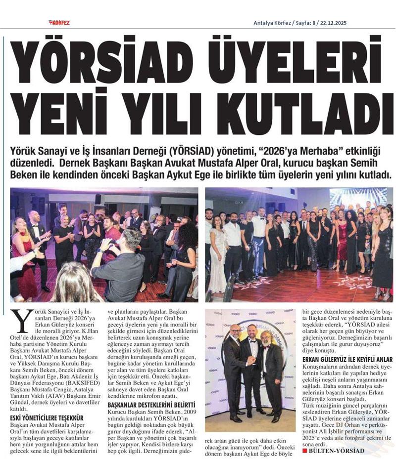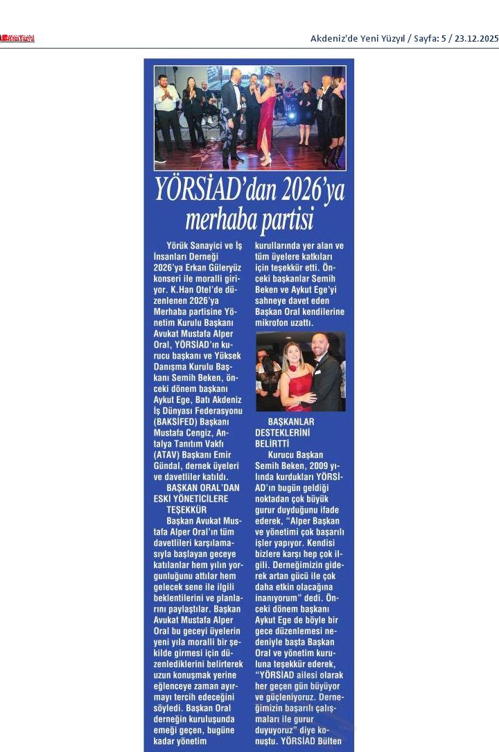 YÖRSİAD BAŞKANIMIZ AV.M.ALPER ORAL YILBAŞI KUTLAMA BASIN BÜLTENİ